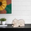 - Handcrafted Teak Wood Cat Sculpture in pearl white finish.