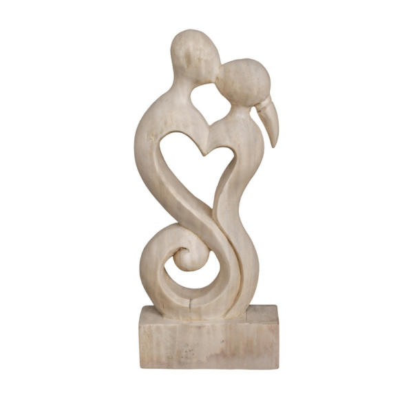 • Handcrafted  Teak Wood Couple Sculpture in pearl white finish.
