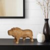 - Handcrafted Teak Wood Lion Sculpture in Natural Finish.